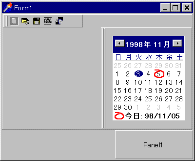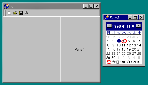 Form2の方は、MonthCalendar(Win32ページ)だけを乗せたものです。