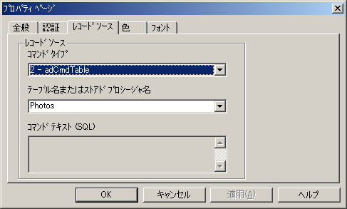 以上で、AdodcコントロールはDbPhotos.mdb内のPhotosテーブルを参照する設定となりました。