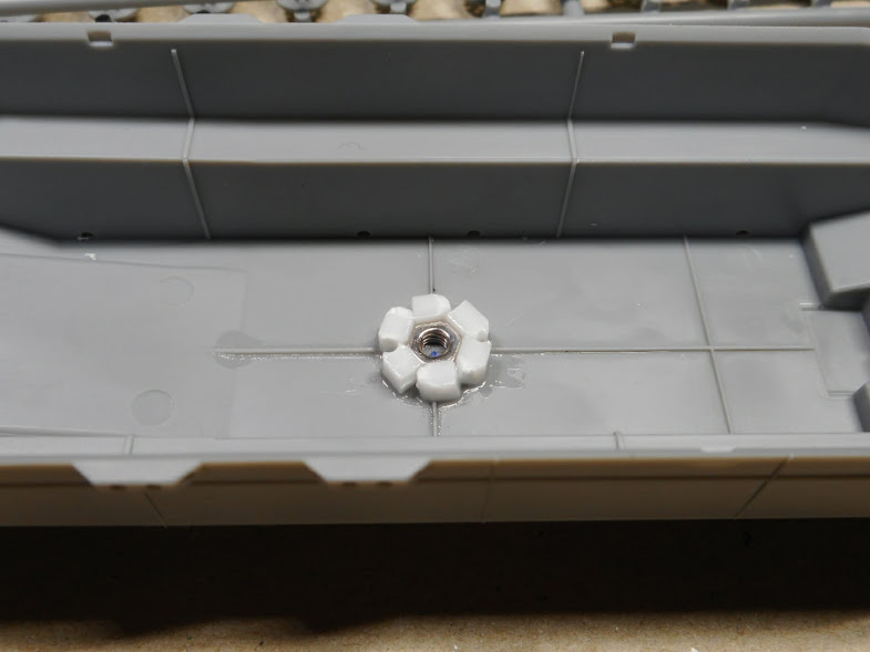 ボディの内側にディスプレイ時の固定用にナットを仕込みます。