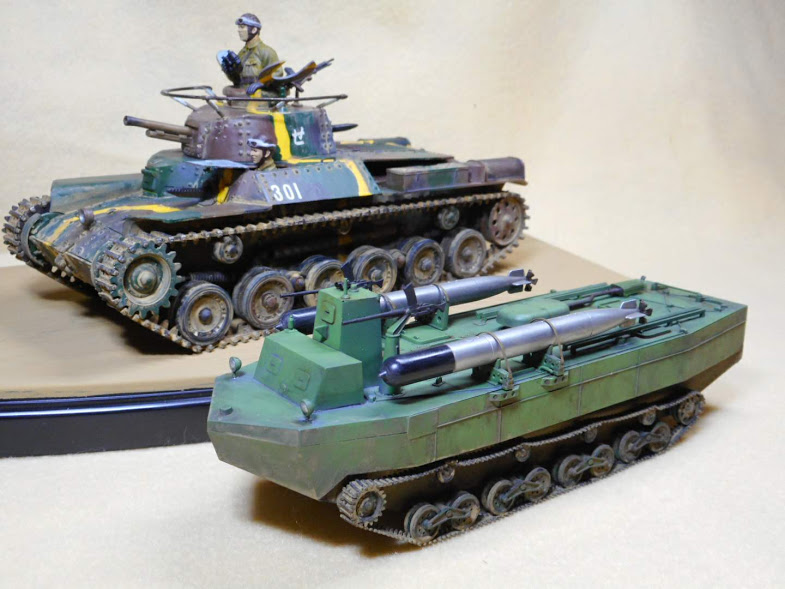 1/72の同スケールモデル、九四式軽装甲車、八九式中戦車と並べると桁外れな大きさを感じます。